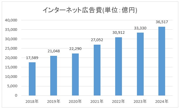 特にインターネット広告の広告費は2018年以降上昇を続けており、今後も更なる伸びが期待されています。